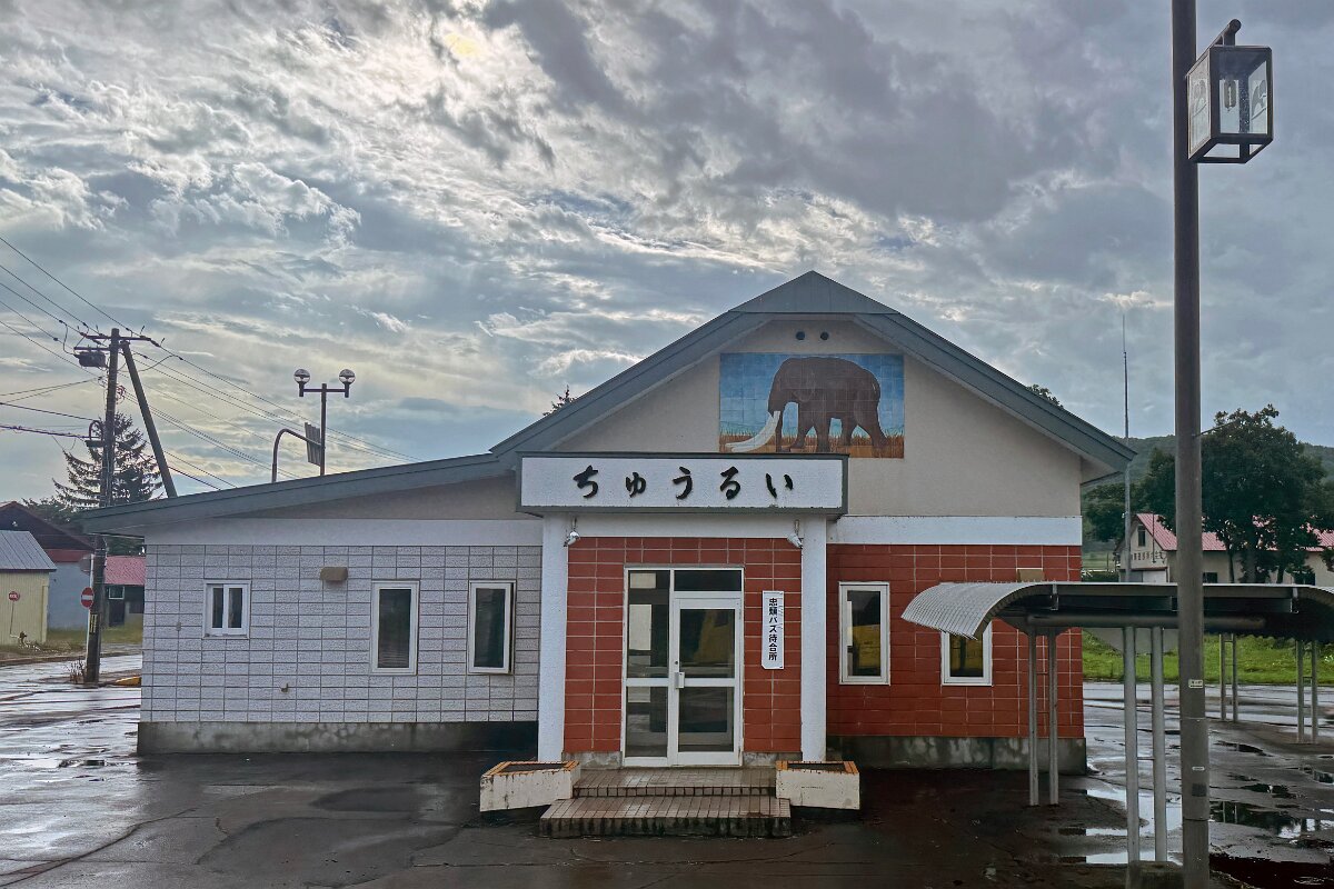 忠類で路線バスも休憩 この村でナウマンゾウ化石が発掘されました