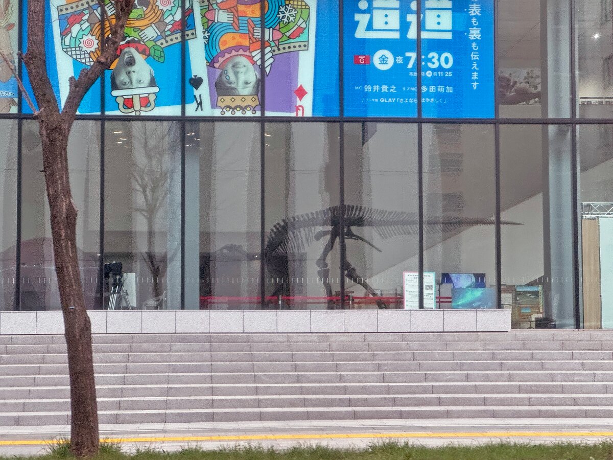 NHK札幌の前を通るとカムイリュウの全身骨格の展示が見えました
