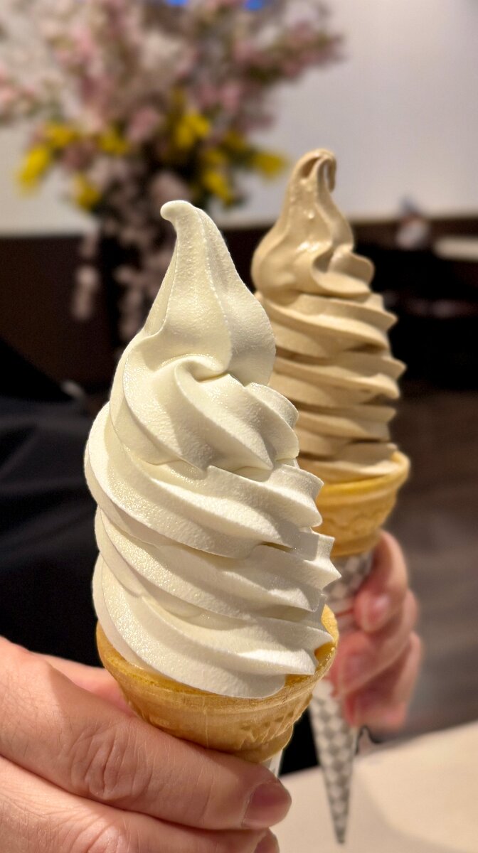 雪印パーラーでソフトクリームと雪印パーラー限定コーヒー牛乳ソフト